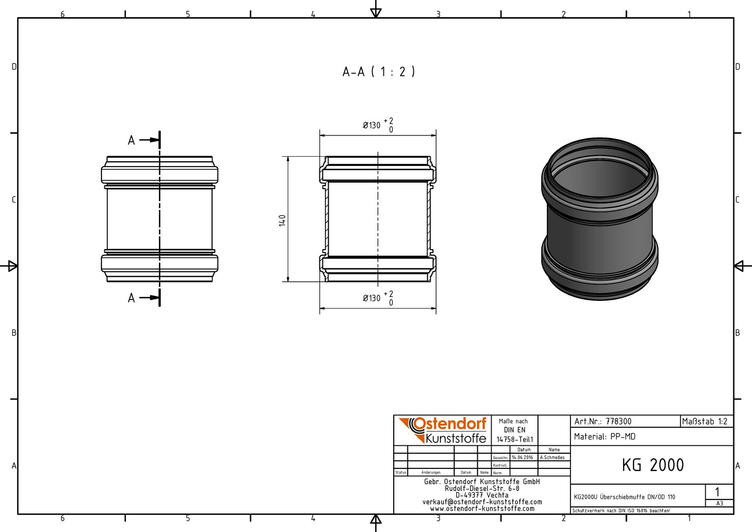 Ostendorf KG2000 Überschiebmuffe U DN/OD 110