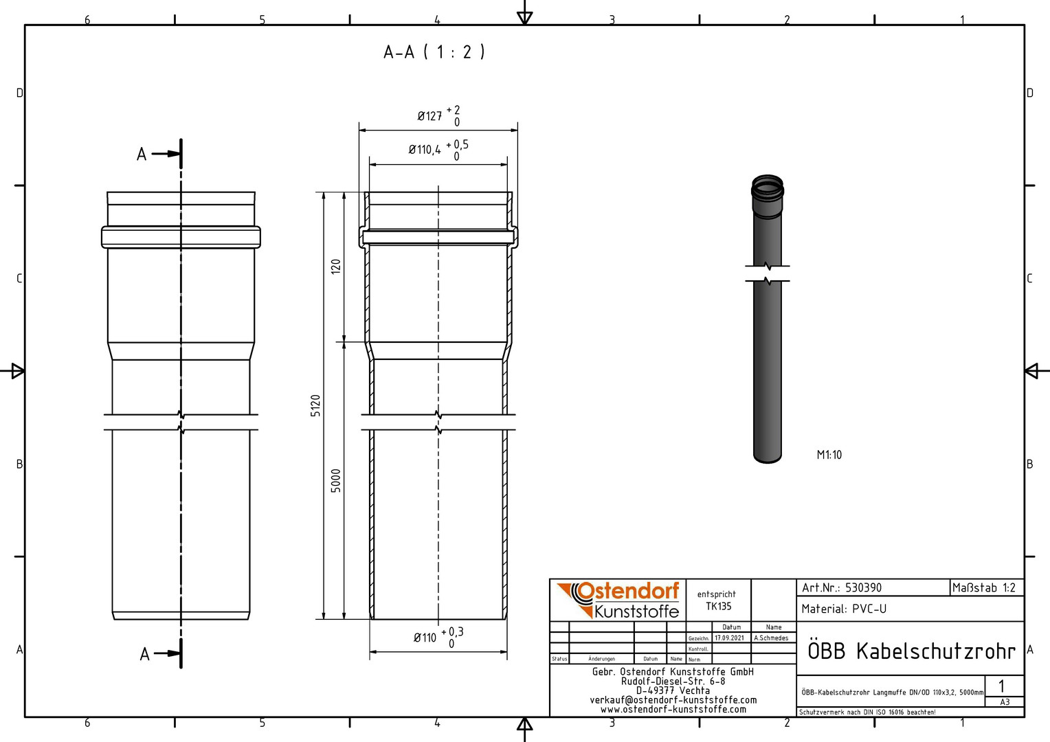 Ostendorf Kabelschutzrohr ÖBB DN/OD 110 x 3,2, 5000 mm, mit Langmuffe aus PVC-U