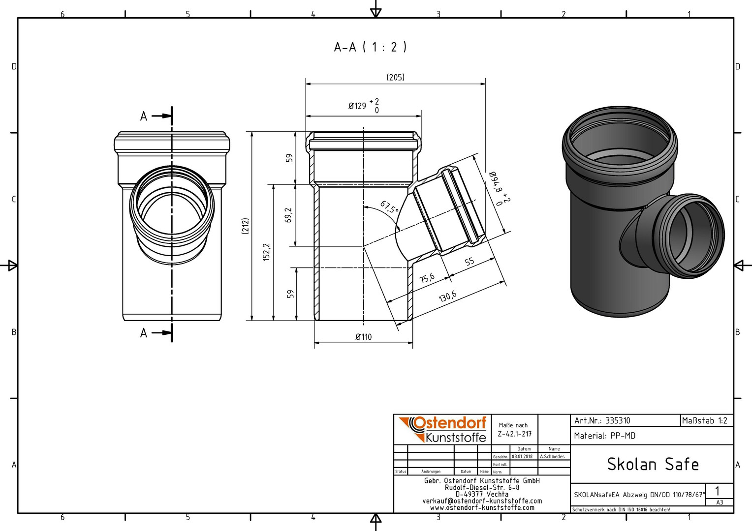 Ostendorf SKOLANsafe Abzweig EA DN/OD 110/78, 67,5Grad