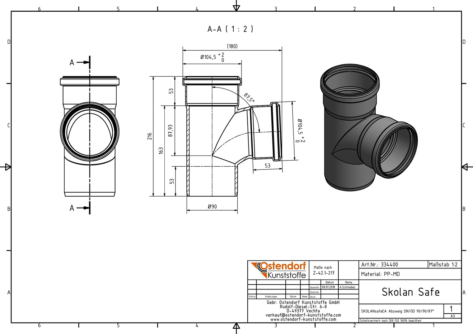 Ostendorf SKOLANsafe Abzweig EA DN/OD 90/90, 87,5Grad