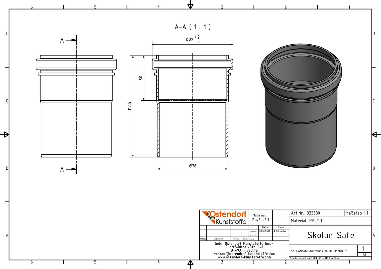 Ostendorf SKOLANsafe Anschluss DN/OD 75, an HTsafe