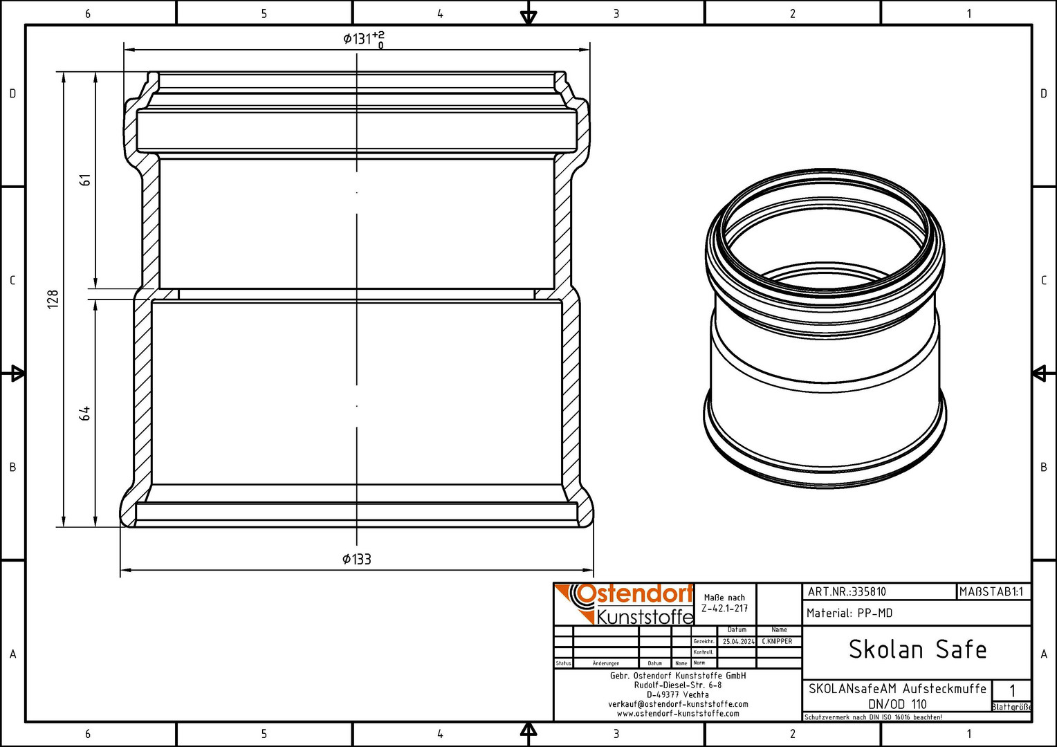 Ostendorf SKOLANsafe Aufsteckmuffe AM DN/OD 110
