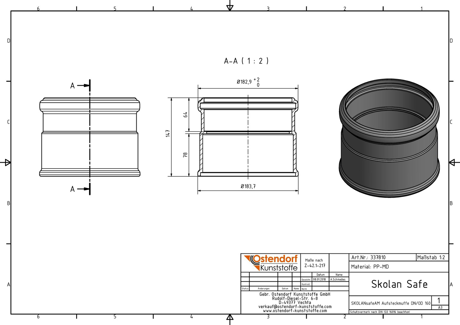 Ostendorf SKOLANsafe Aufsteckmuffe AM DN/OD 160