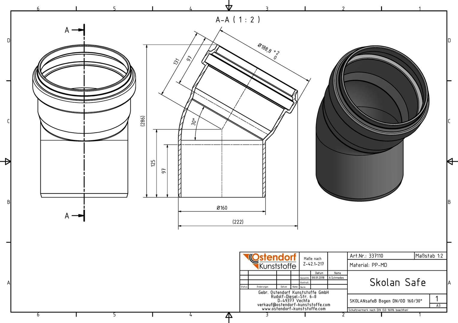 Ostendorf SKOLANsafe Bogen B DN/OD 160, 30°