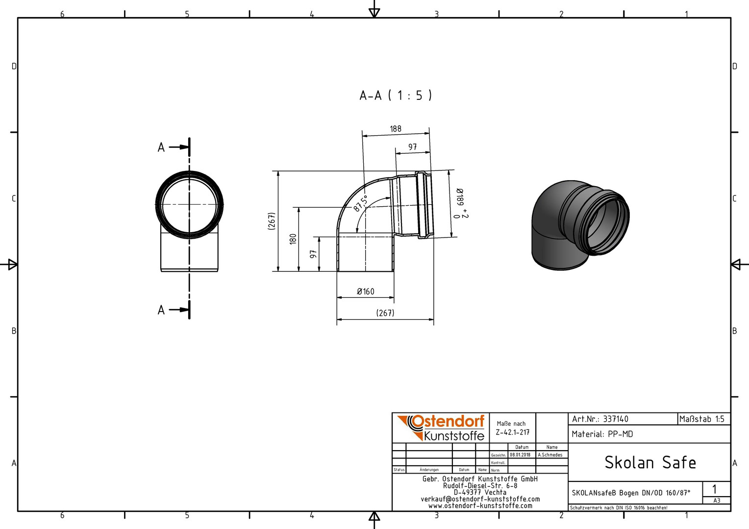 Ostendorf SKOLANsafe Bogen B DN/OD 160, 87,5°