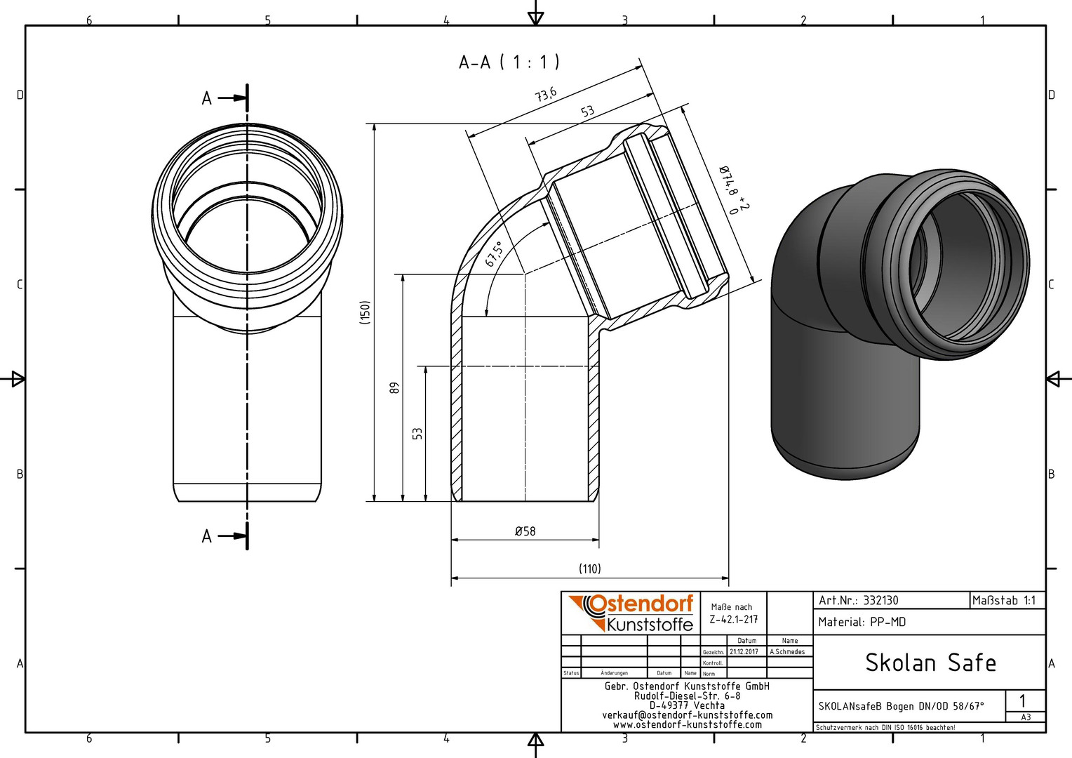 Ostendorf SKOLANsafe Bogen B DN/OD 58, 67,5°