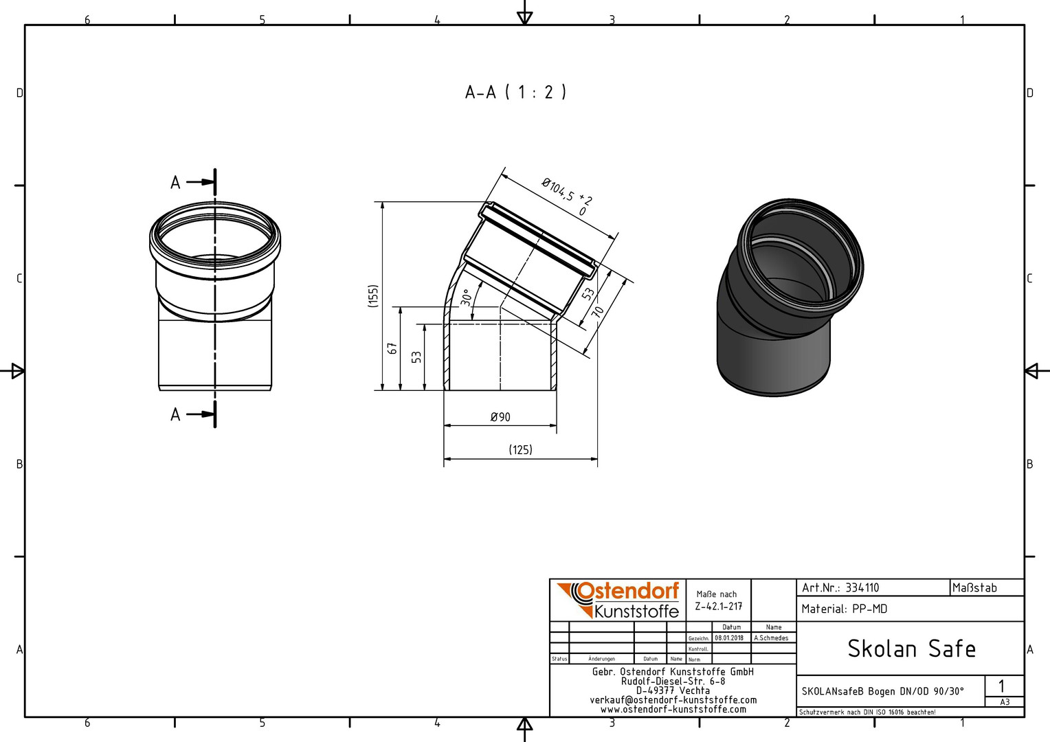 Ostendorf SKOLANsafe Bogen B DN/OD 90, 30°