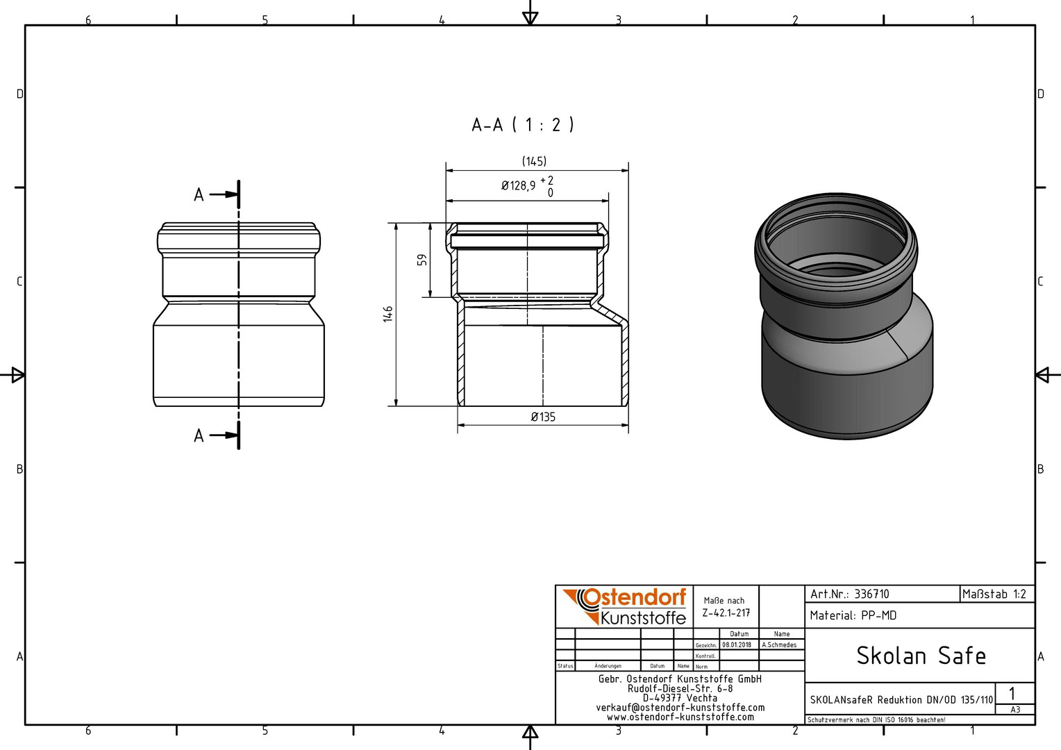 Ostendorf SKOLANsafe Reduzierer R DN/OD 135/110