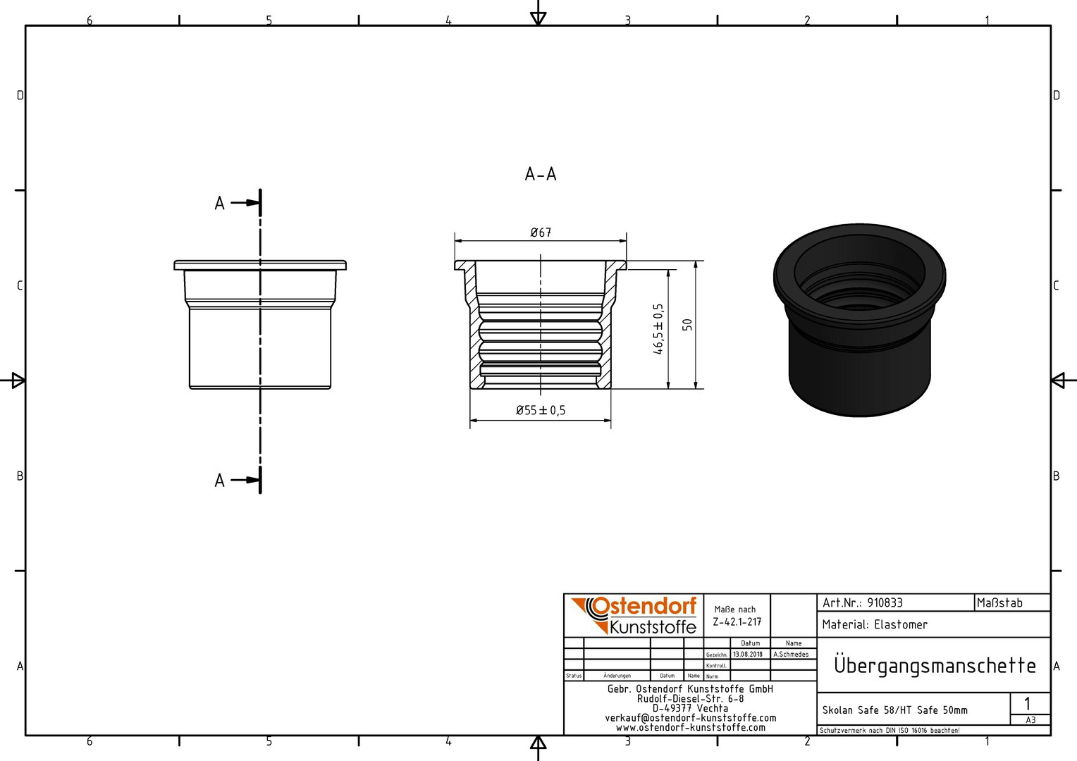 Ostendorf SKOLANsafe Übergangsmanschette 58 mm, an HTsafe DN 50