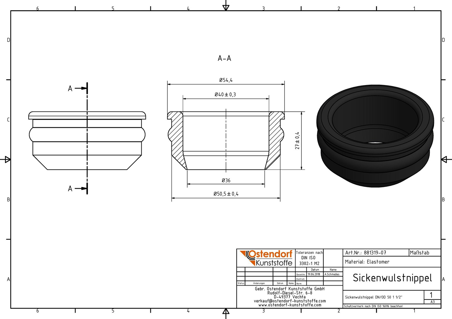 Ostendorf Sickenwulstnippel DN/OD 50, 1 1/2", für Übergang an Metallrohre