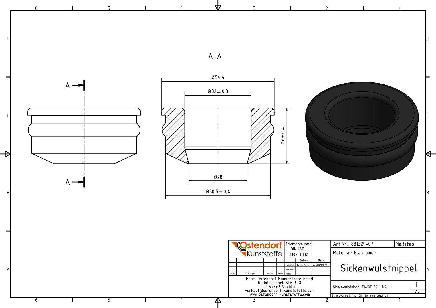 Ostendorf Sickenwulstnippel DN/OD 50, 1 1/4", für Übergang an Metallrohre