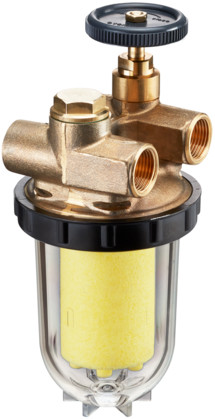 G 3/8 IG x G 3/8 IG, Tasse Kunststoff klar, Gehäuse Messing, mit Filterelement, DN 10, Heizölfilter mit G 3/8 IG auf der Tankseite können mit Oventrop Messing Klemmringverschraubungen 6, 8, 10 oder 12 mm angeschlossen werden