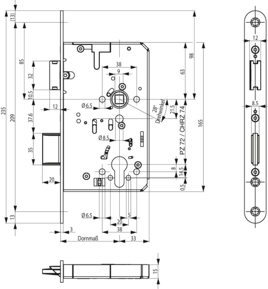 FH-Panik-Einsteckschloss B-2326, Panikfunktion E