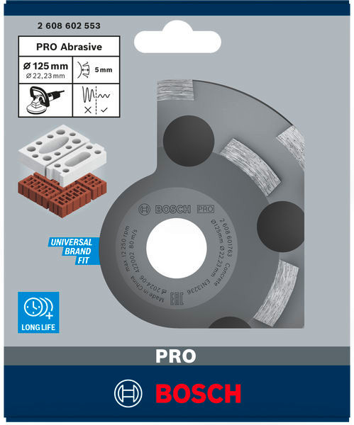 Lange Lebensdauer beim Schleifen von abrasiven Materialien! Hochwertiges Diamantkorn und Matrix für Langlebigkeit und Präzision Bauarbeiter müssen häufig große Ziegelsteine und andere abrasive Oberflächen schleifen. Mit der speziellen PRO Abrasive Topfscheibe bekommst du ein Zubehör an die Hand, das effektiv arbeitet und lange hält. Der hochwertige Diamantbesatz in einer Premium-Metallmatrix sorgt für eine überzeugende Leistung und Haltbarkeit der PRO Abrasive Topfscheibe. Sie ist präzise ausbalanciert, damit wenig Vibrationen entstehen und Profis effektiv arbeiten können.