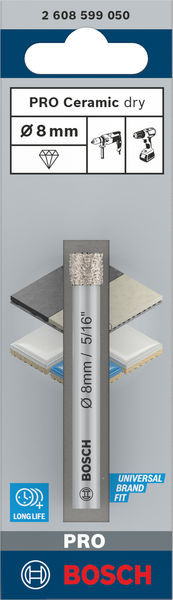 Langlebiges Bohren in harten und weichen Keramikfliesen! Hochwertiges Diamantkorn und Matrix für Langlebigkeit und Präzision Das Bohren durch harte Keramikfliesen kann schwierig sein, da sich Standardbohrer zu schnell abnutzen und die Fliese beschädigen können. Der PRO Ceramic dry ist anders. Er wurde speziell entwickelt für das Bohren durch harte und weiche Fliesen – immer und immer wieder. Der langlebige PRO Ceramic dry Bohrer weist einen hochwertigen Diamantbesatz in einer Metallmatrix auf, damit du harte und weiche Keramikfliesen problemlos bearbeiten kannst. Der Bohrer verfügt über ein Kühlwachs, es ist also kein Wasser nötig.