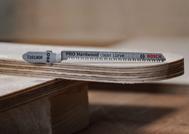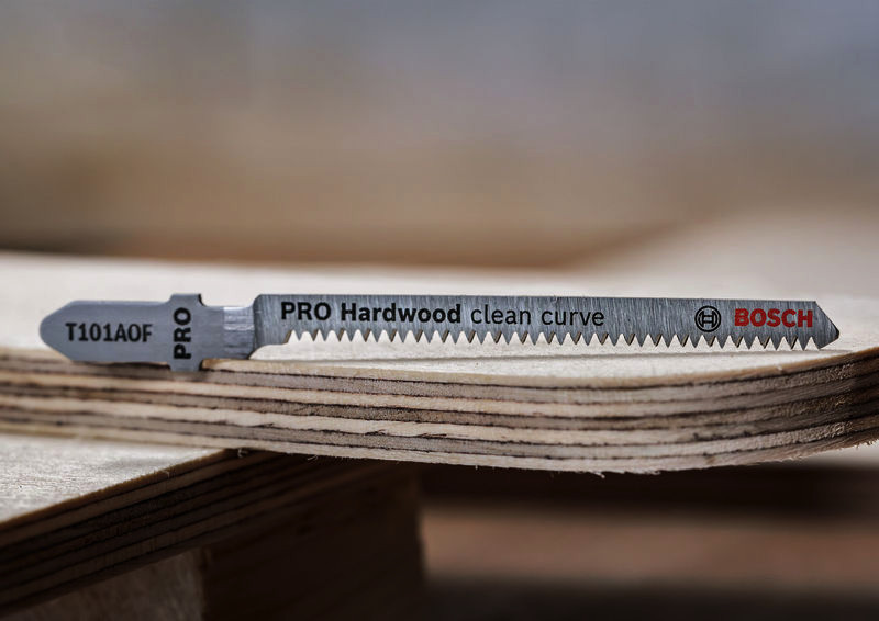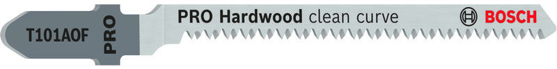 Herausragende Lebensdauer in Hartholz! Bi-Metall Blatt: Kombiniert harte Zähne mit flexiblem Blattkörper Wir haben das PRO Hardwood clean curve T101AOF Stichsägeblatt entwickelt, damit du saubere Kurvenschnitte in Hartholz und Laminatdielen erzielen kannst, ohne hängen zu bleiben – immer und immer wieder. Das PRO Hardwood clean curve T101AOF Stichsägeblatt aus BI-Metall (BIM) verfügt über eine Zahnleiste aus Schnellarbeitsstahl (HSS), die mit einem Körper aus Kohlenstoffstahl (HCS) verbunden ist. Dadurch bekommst du die Festigkeit, die du für die mühelose Bearbeitung von Hartholz und Laminatdielen benötigst. Mit dem schmalen, konischen Blatt kannst du Kurven schneiden, während die geschliffenen, spitzen Zähne für saubere Schnitte sorgen. Schneide damit Werkstücke bis zu einer Dicke von 15 mm.