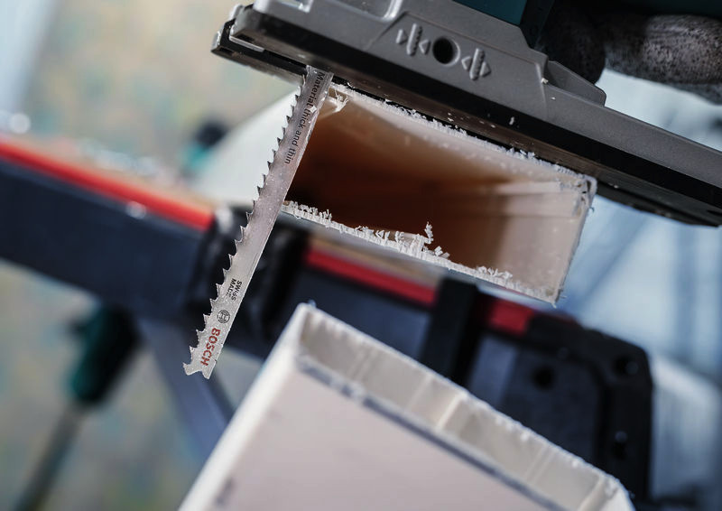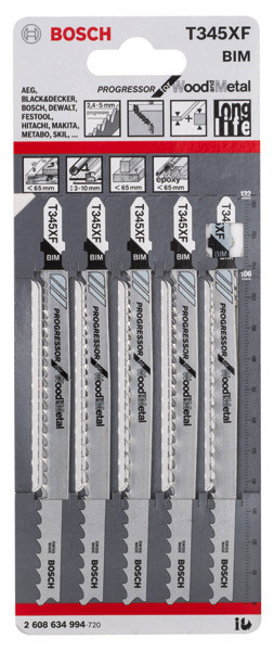 Herausragende Lebensdauer beim Schneiden verschiedener Materialien! Bi-Metall Blatt: Kombiniert harte Zähne mit flexiblem Blattkörper Wenn du Holz schneidest, kann ein Nagel oder eine Schraube ein normales Stichsägeblatt leicht beschädigen. Für dieses vielseitige PRO Multi Material thick and thin T345XF ist das kein Problem. Wir haben es entwickelt, damit du schnelle, gerade Schnitte in Werkstücke unterschiedlicher Dicke mit Verbindungselementen aus Stahl in Standardstärke machen kannst. Das PRO Multi Material thick and thin T345XF besteht aus BI-Metall: Es verfügt über eine Zahnleiste aus Schnellarbeitsstahl (HSS), die mit einem elastischeren Körper aus Kohlenstoffstahl (HCS) verbunden ist. Dadurch bekommst du die Härte und Flexibilität, die du für die Bearbeitung von Holz mit Metall benötigst. Die gefrästen, geschränkten Zähne des Stichsägeblatts sorgen für schnelle Schnitte, während die progressive Zahnteilung das Schneiden verschiedener Materialien ermöglicht. Das Blatt ist 132 mm lang, sodass du damit Werkstücke mit einer Dicke von bis zu 65 mm schneiden kannst.