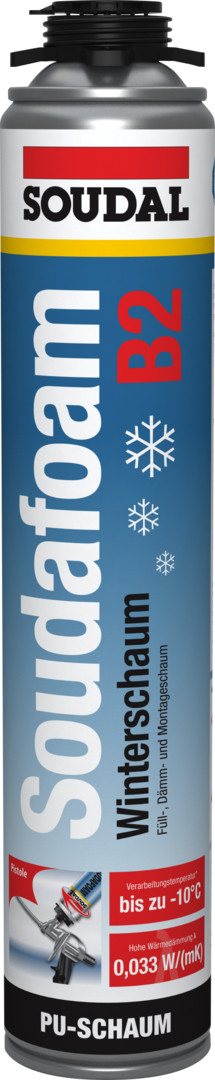Soudafoam Gun B2 Winterschaum ist ein einkomponentiger Polyurethanschaum für Tieftemperaturen. Besonders geeignet zur Schalldämmung, zum Isolieren und Füllen der Bauanschlussfugen nach GEG, DIN 4108 und RAL-Montagerichtlinien Dämmen und Isolieren im Kühlraumbau