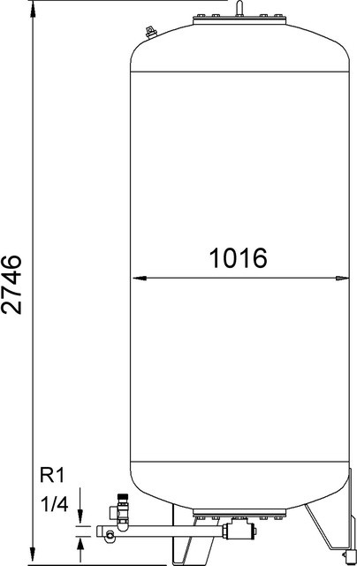 Basisgefäß, Messfuß zur Inhaltsmessung, mit Montageset für den wasserseitigen Anschluss, Frostschutzmittelzusatz bis 50 %, min. zulässiger Druck PSmin 0 bar, max. zulässiger Druck PS 2 bar, max. zulässige Blasentemperatur TB 70 °C, min. zulässige Blasentemperatur TBmin 5 °C, Werkstoffe Stahl, Farbe Beryllium, Airproof-Butylblase nach EN 13831, Transport und Lagerung in frostfreien, trockenen Räumen, gebaut nach PED 2014/68/EU