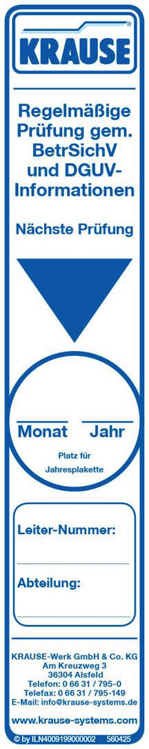 Prüfaufkleber Leitern/Tritte 56x230 mm