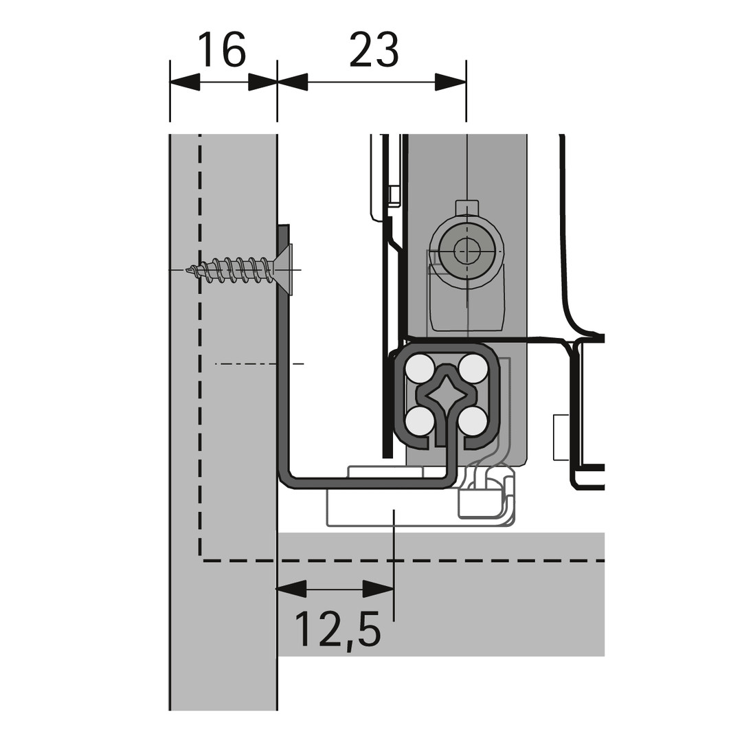 | Einbaubreite / Korpusseitendicke | EB 12,5 (Korpusseitendicke 16 mm) |