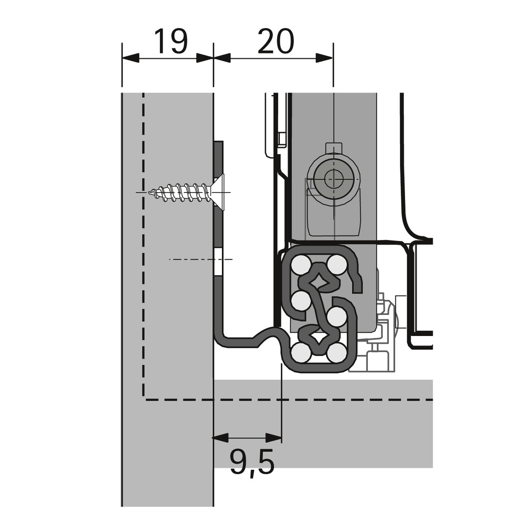 | Einbaubreite / Korpusseitendicke | EB 9,5 (Korpusseitendicke 19 mm) |