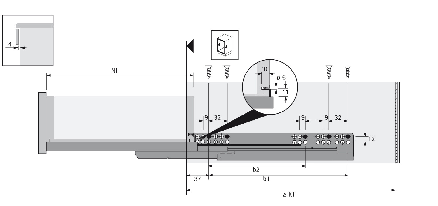 • Geeignet für Schubkästen mit Zargendicke bis 16 mm