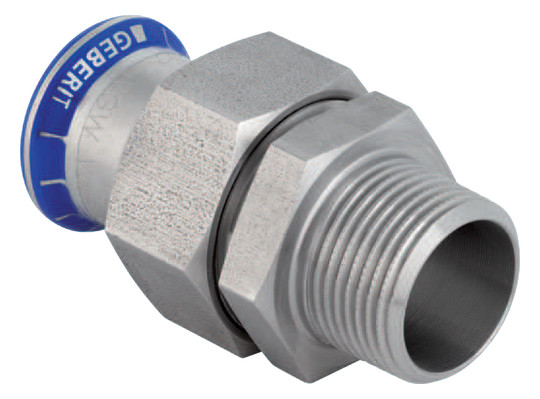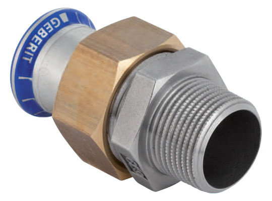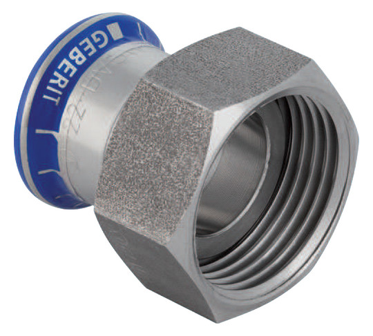 Geberit Übergangswinkel Mapress 15 mm x Rp 1/2, 90°, mit Einschubende und Innengewinde, Edelstahl