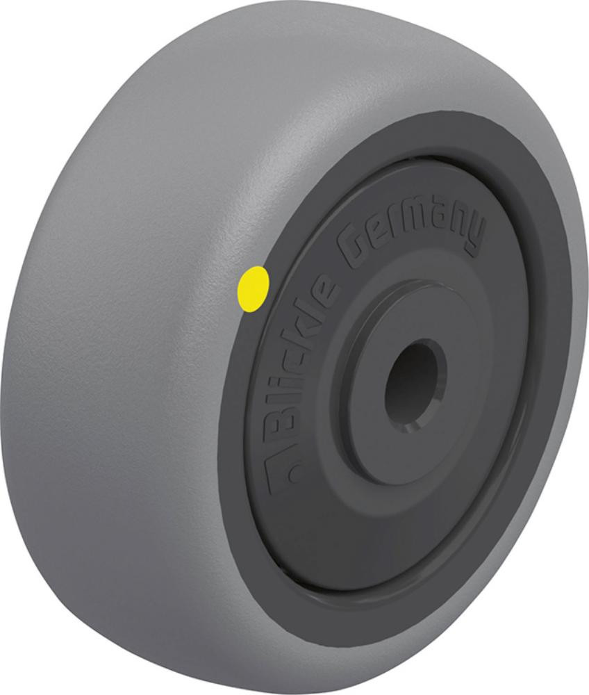 • Rad: thermoplastisches Gummi-Elastomer (TPE), 85 Shore A, Farbe grau, spurlos, geringer Roll-Schwenkwiderstand, elektrisch leitfähig