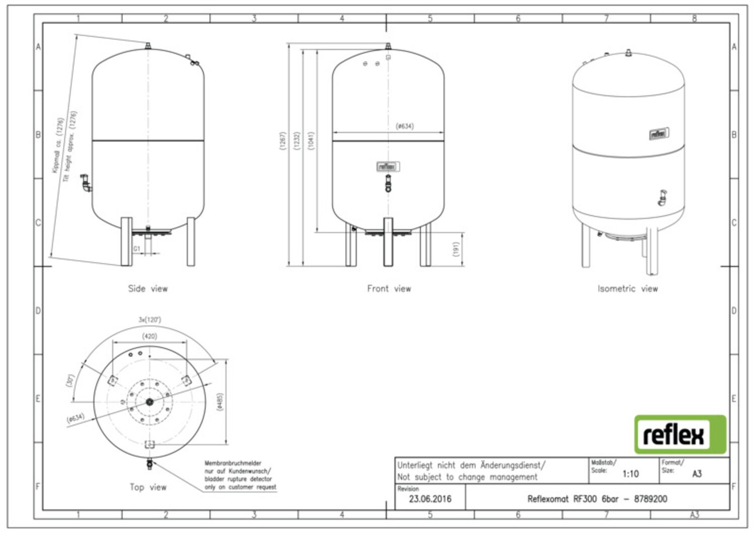 austauschbare Vollmembran nach DIN EN 13831, Zulassung gemäß Richtlinie über Druckgeräte 2014/68/EU, max. zulässige Systemtemperatur 120 °C