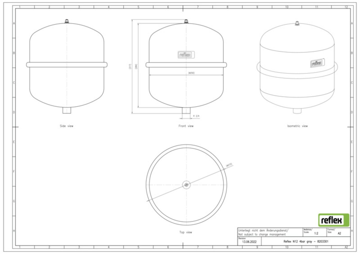 Reflex Membran-Druckausdehnungsgefäß N N 12, 4 bar/70 °C, R 3/4, grau