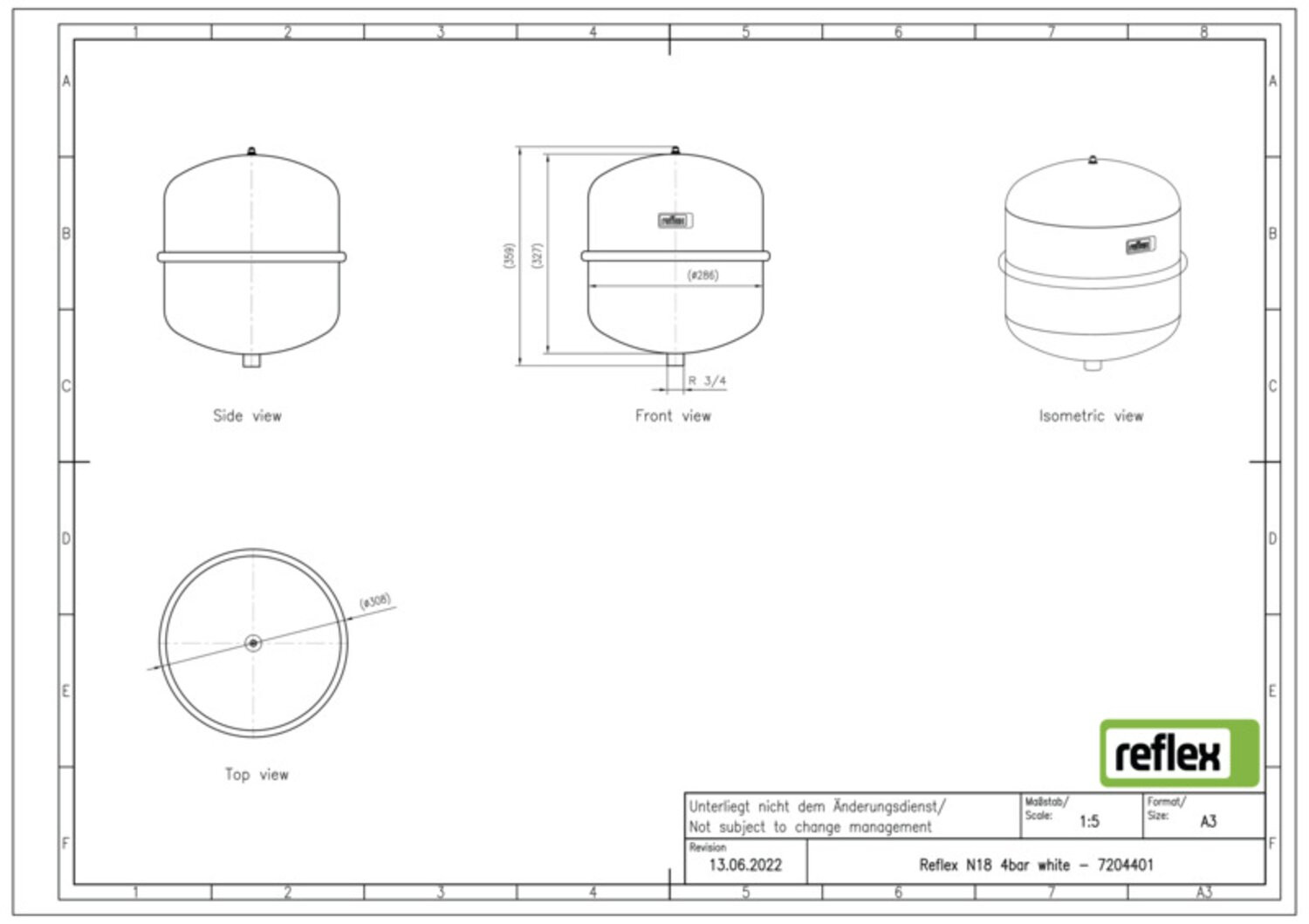 Reflex Membran-Druckausdehnungsgefäß N N 18, 4 bar/70 °C, R 3/4, weiß