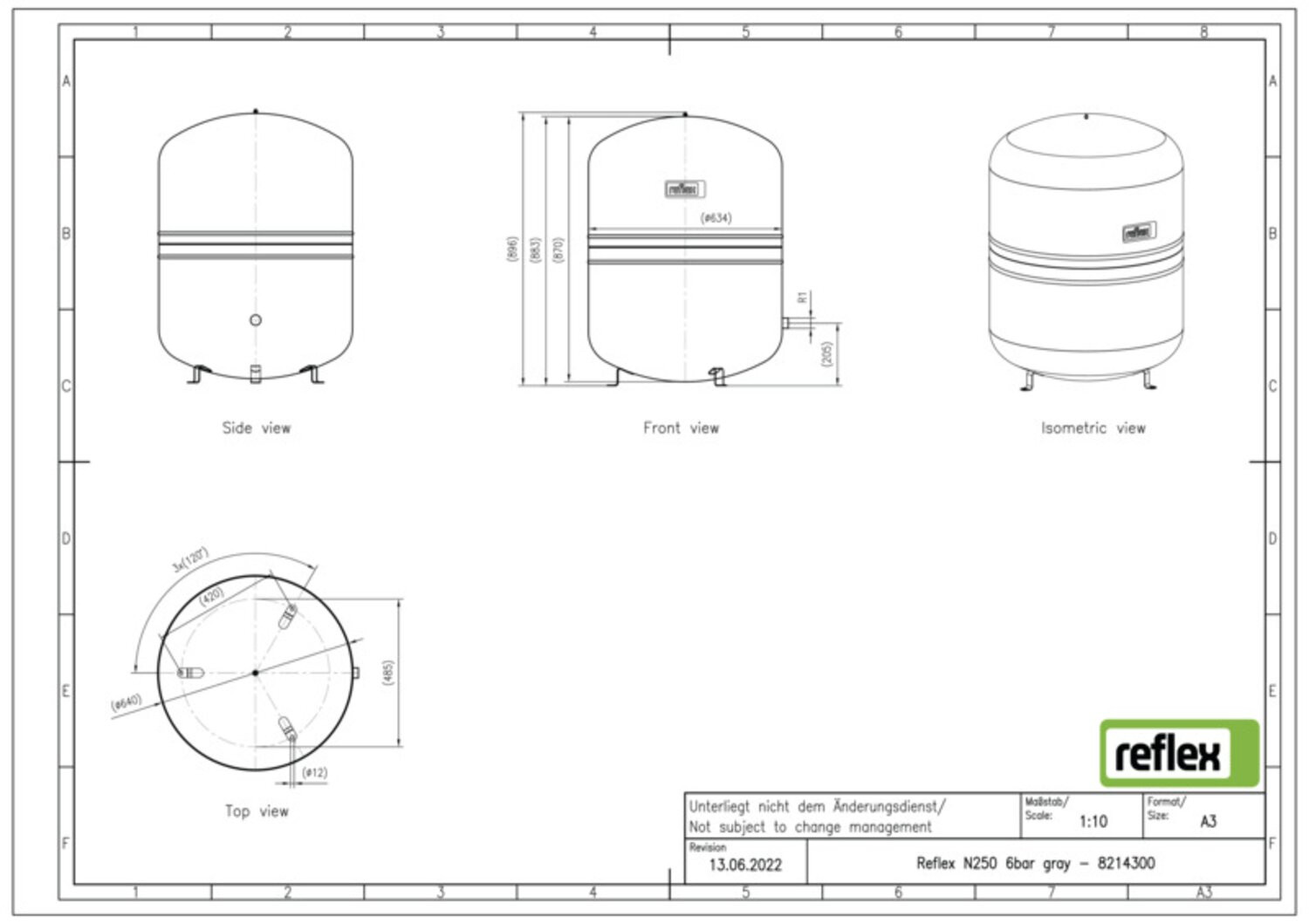 Reflex Membran-Druckausdehnungsgefäß N N 250, 6 bar/70 °C, R 1, grau