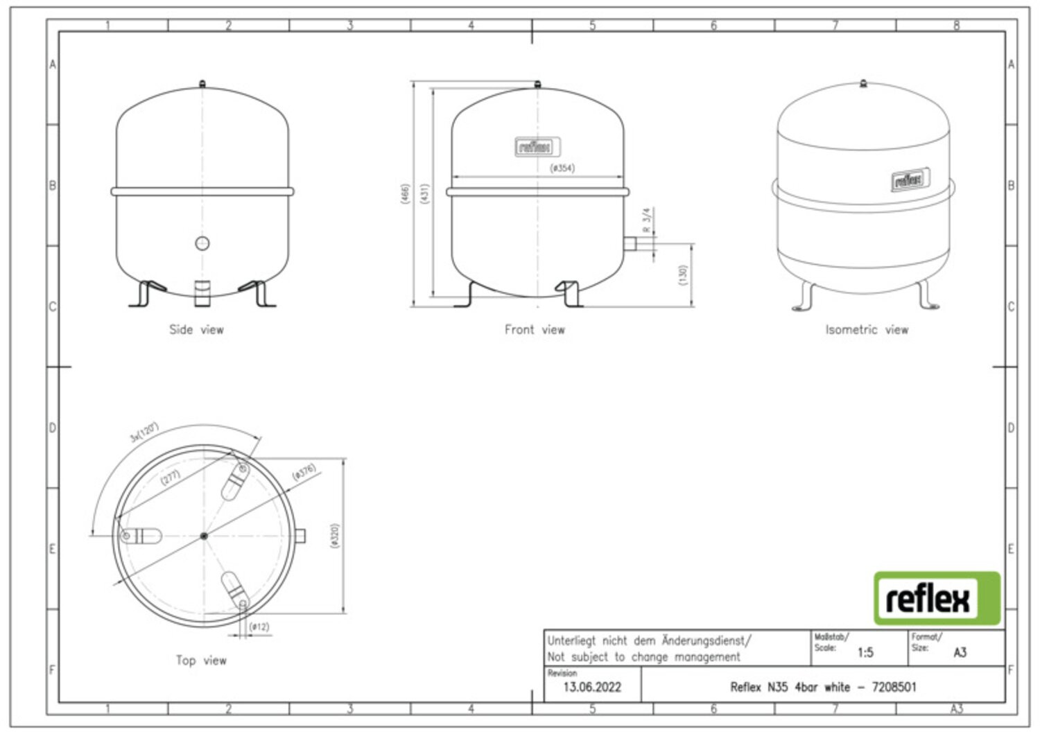Reflex Membran-Druckausdehnungsgefäß N N 35, 4 bar/70 °C, R 3/4, weiß