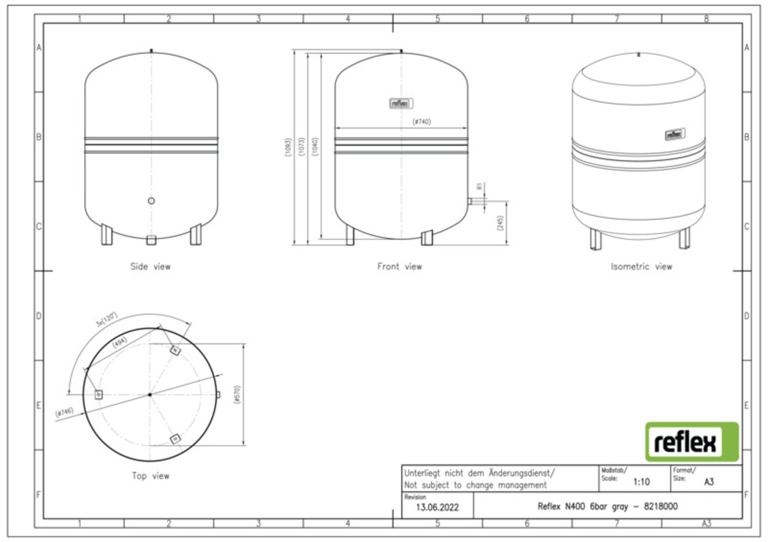 Reflex Membran-Druckausdehnungsgefäß N N 400, 6 bar/70 °C, R 1, grau