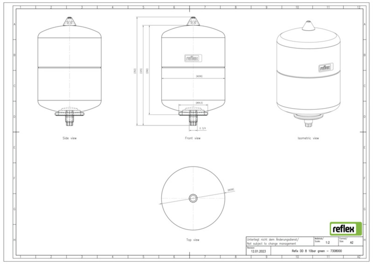 Reflex Membran-Druckausdehnungsgefäß Refix DD 8, 10 bar/70 °C, G 3/4, grün