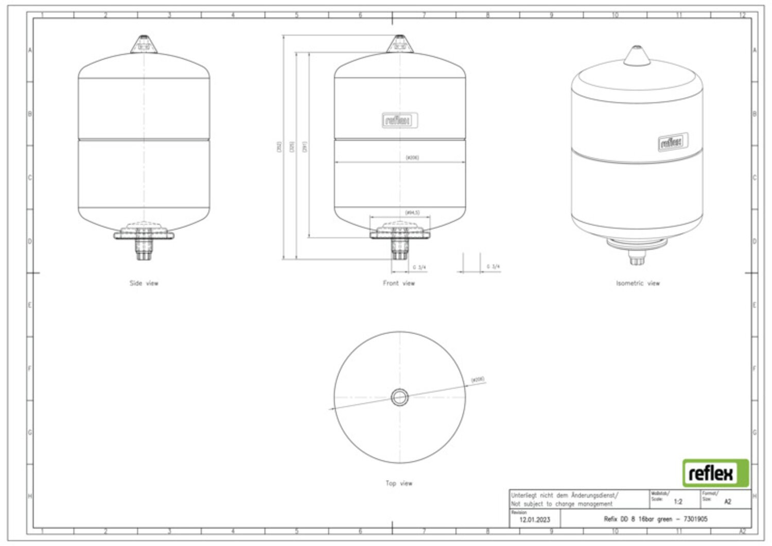 Reflex Membran-Druckausdehnungsgefäß Refix DD 8, 16 bar/70 °C, G 3/4, grün