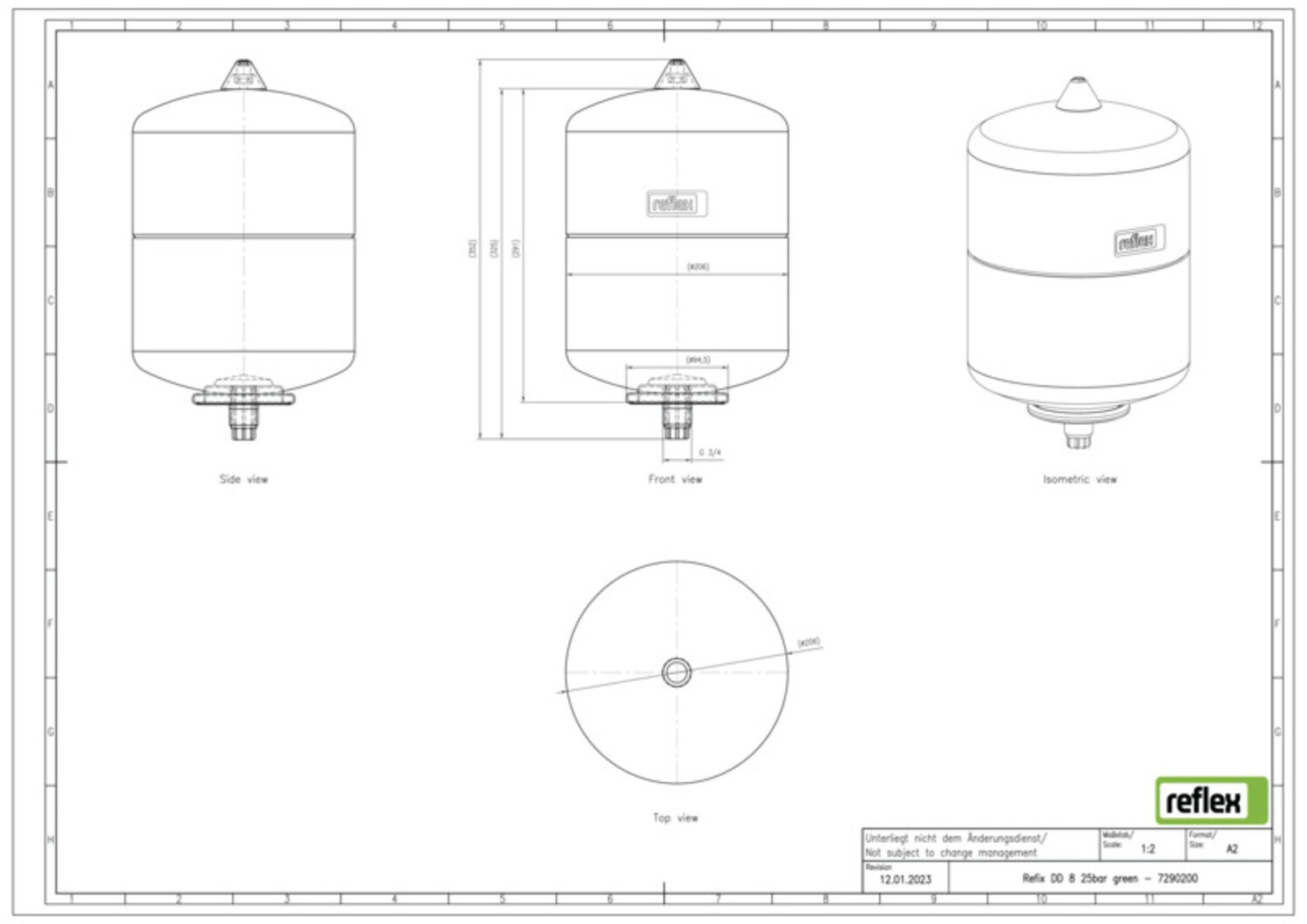 Reflex Membran-Druckausdehnungsgefäß Refix DD 8, 25 bar/70 °C, G 3/4, grün