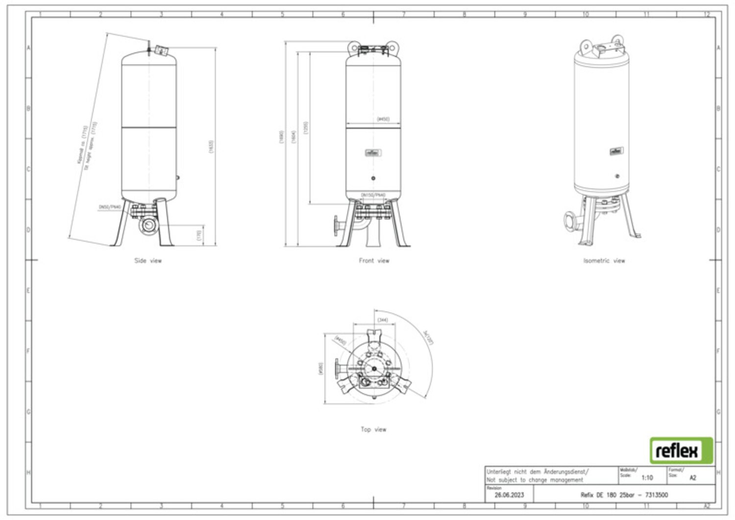 Reflex Membran-Druckausdehnungsgefäß Refix DE 180, 25 bar/70 °C, DN 50/PN 40