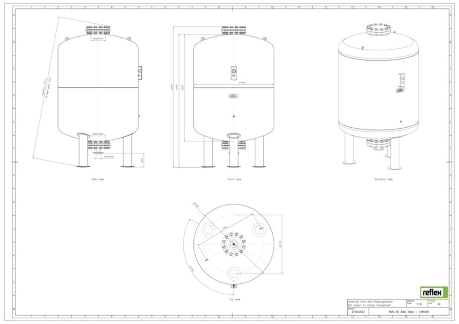Reflex Membran-Druckausdehnungsgefäß Refix DE 3000, 25 bar/70 °C, DN 65/PN 40