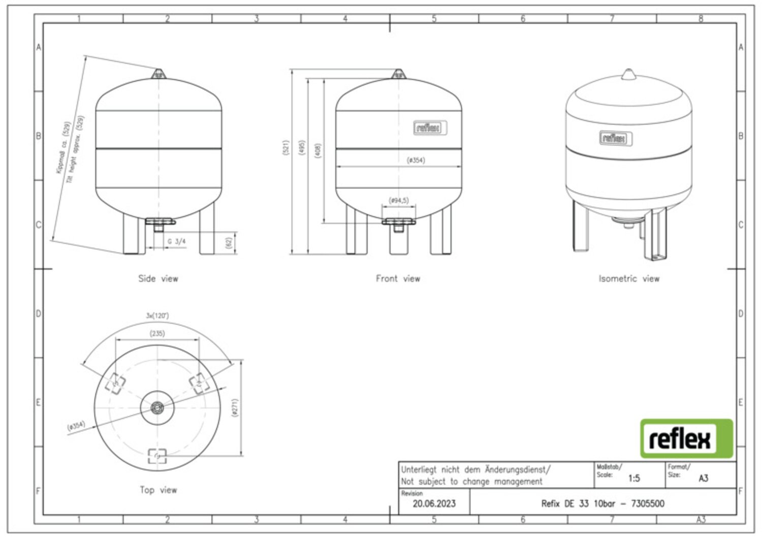 Reflex Membran-Druckausdehnungsgefäß Refix DE 33, stehend, 10 bar/70 °C, G 3/4, blau