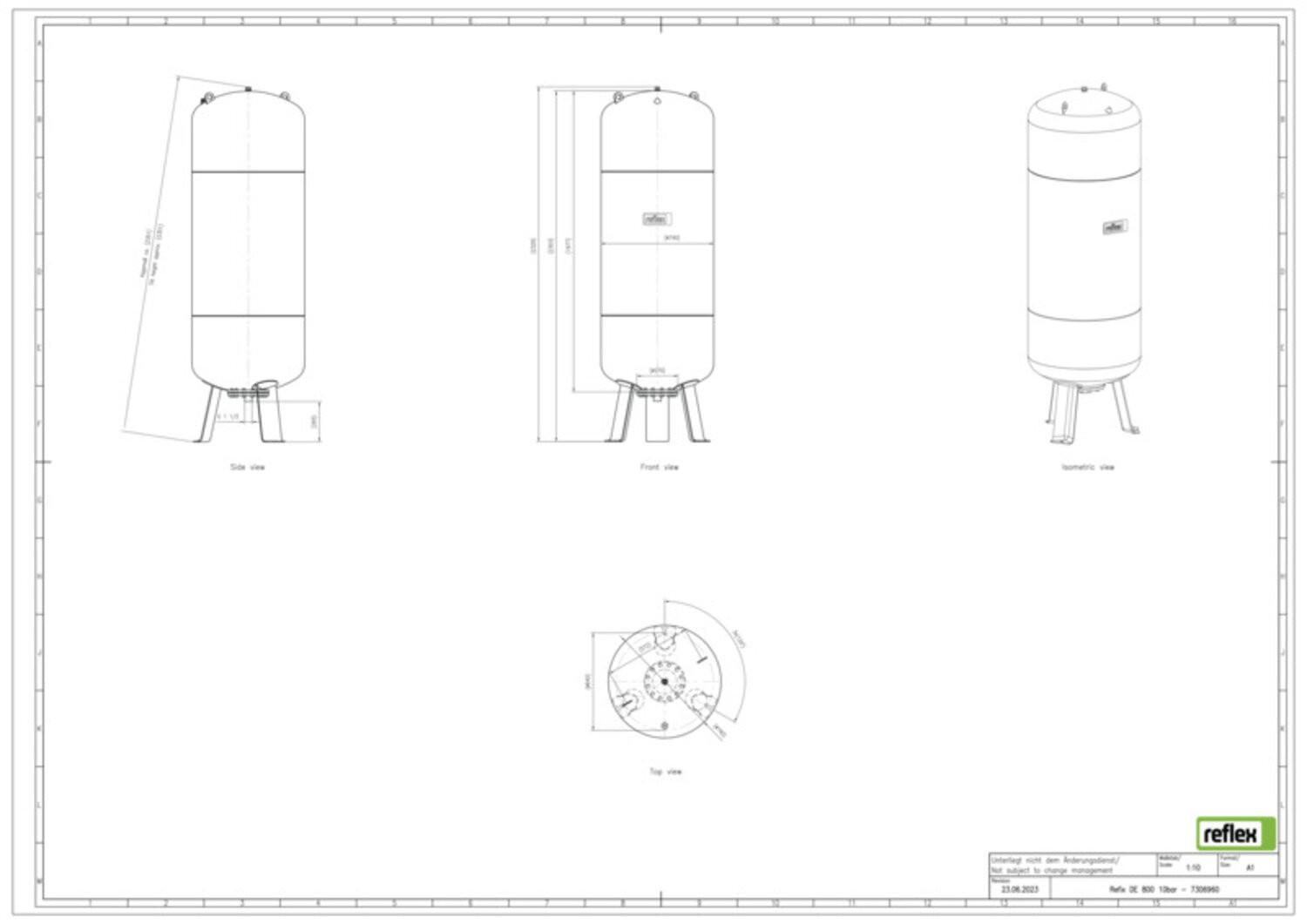 für Anlagen die nicht den Anforderungen der DIN 1988 unterliegen (z. B. Feuerlösch-, Betriebswassersysteme, Fußbodenheizungen, Geothermie), bis 33 l mit Befestigungslaschen, wasserberührende Teile korrosionsgeschützt, Vollmembran nach DIN EN 13831/ab 50 l tauschbar, für Frostschutzmittelzusatz mindestens 25-50 %, nicht durchströmt, ohne Absperrung und ohne Entleerung, ab Ø 1000 mm mit Manometer, Manometer und Vordruckventil durch Metallbügel geschützt, Zulassung gemäß Richtlinie über Druckgeräte 2014/68/EU, Epoxidharzbeschichtung, mit werkseitig druckbeaufschlagtem Gasraum, WRAS und ACS zertifizierte Gefäße auf Anfrage, 10/16 bar >= 1000 l/Ø 1000 mm sind mit einer Membranbruchmelder-Muffe ausgestattet