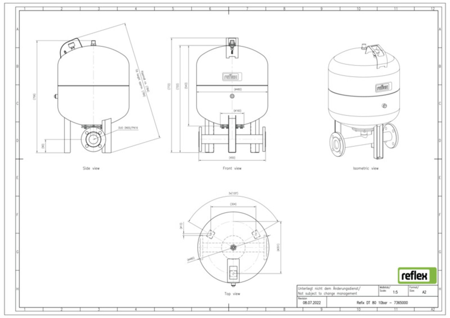 Reflex Membran-Druckausdehnungsgefäß Refix DT 80, 10 bar/70 °C, DN 50/PN 16, grün
