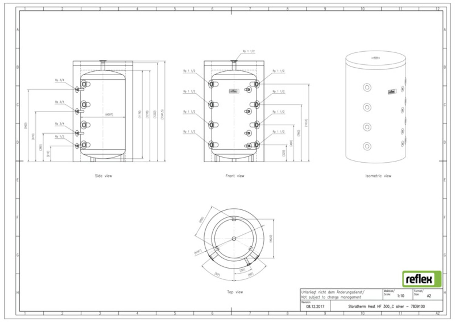 Reflex Pufferspeicher Storatherm Heat HF 300_C, Ø 797 mm, 3 bar, mit Isolierung, silber