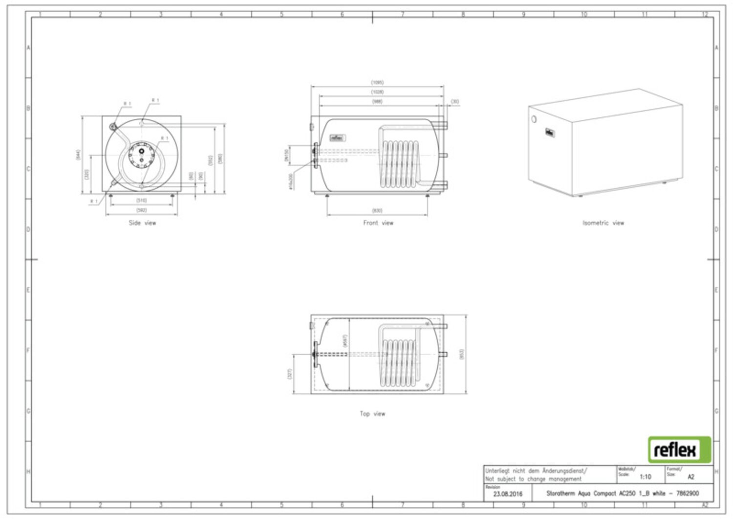 Reflex Speicher Storatherm Aqua Compact AC250/1_B, Blechmantel, mit Glattrohrwärmeübertrager, weiß
