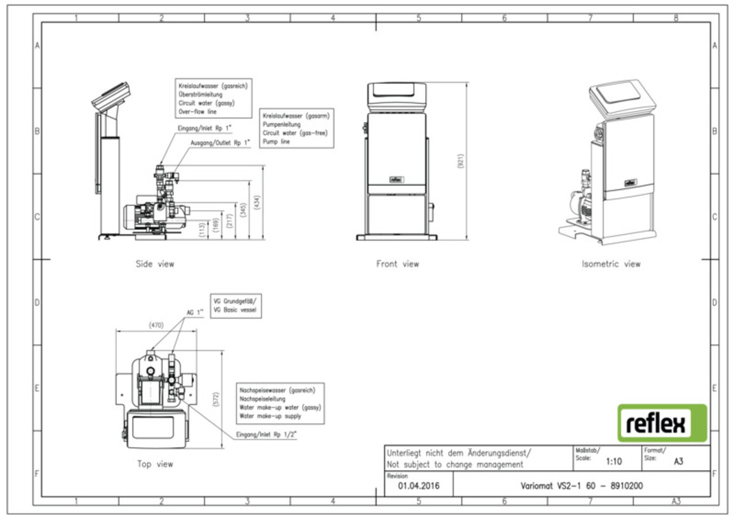Reflex Steuereinheit Variomat VS 2-1/60, 10 bar, 70 °C, 230 V, mit 1 Pumpe