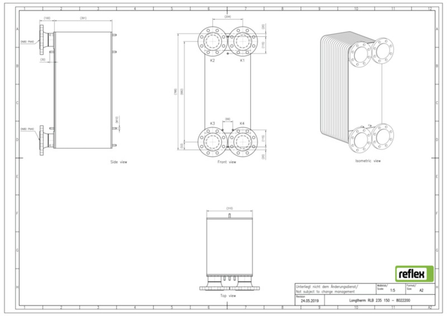 Reflex Wärmetauscher Longtherm RLB-235-150, Plattenzahl 150, gelötet, Edelstahl, eingängig