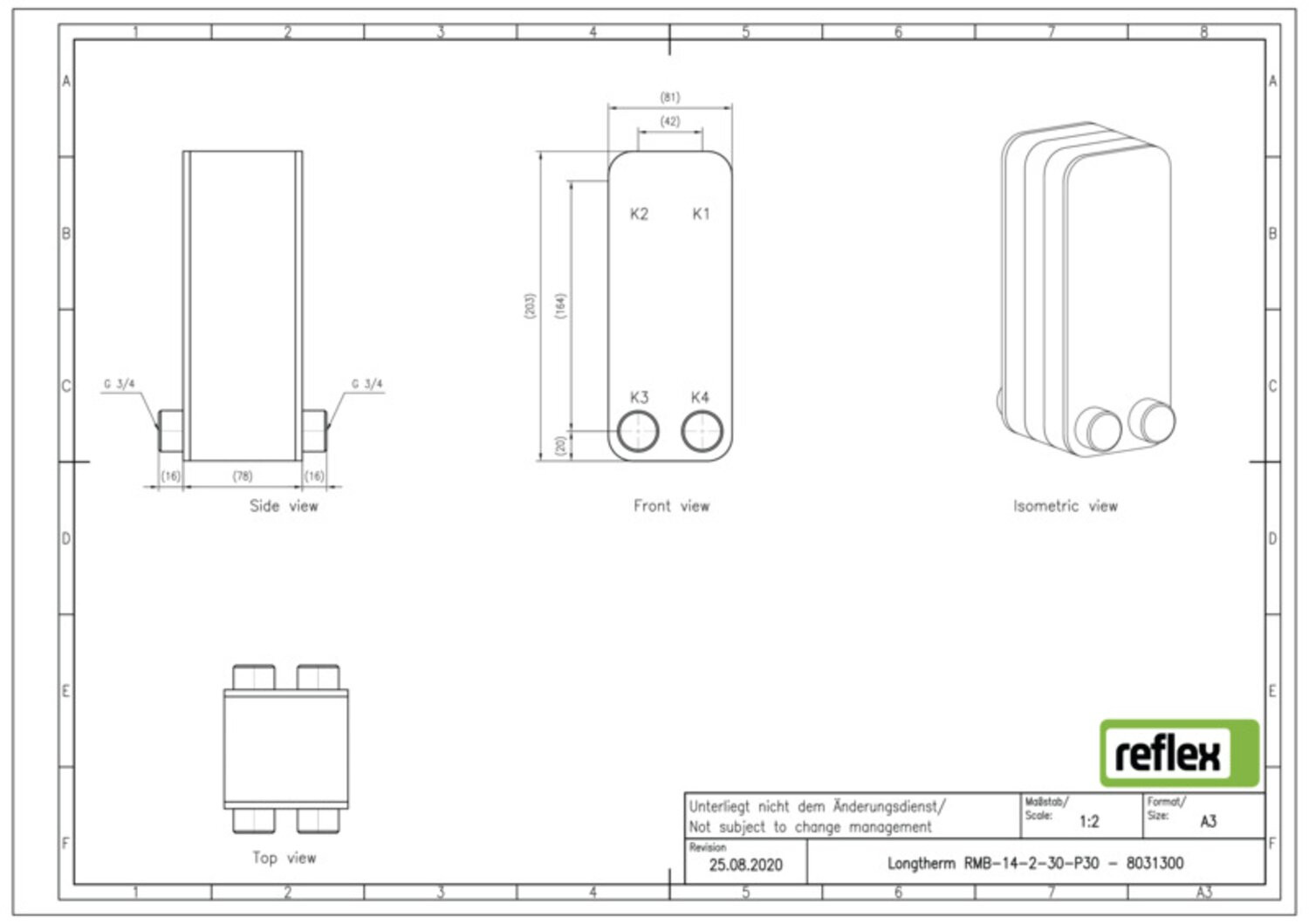 Reflex Wärmetauscher Longtherm RMB-14-2-30, Plattenzahl 30, gelötet, Edelstahl, zweigängig