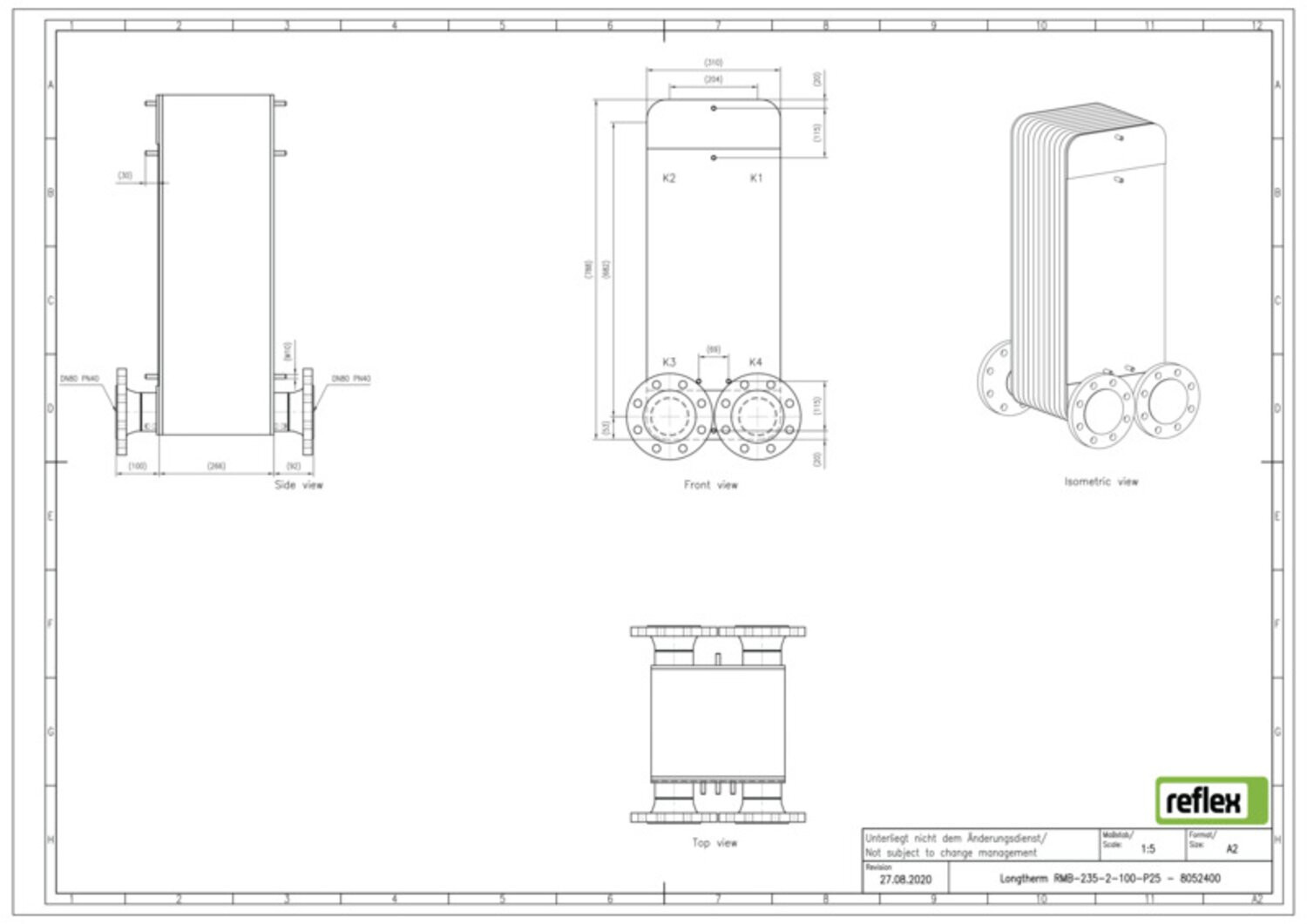 Reflex Wärmetauscher Longtherm RMB-235-2-100, Plattenzahl 100, gelötet, Edelstahl, zweigängig