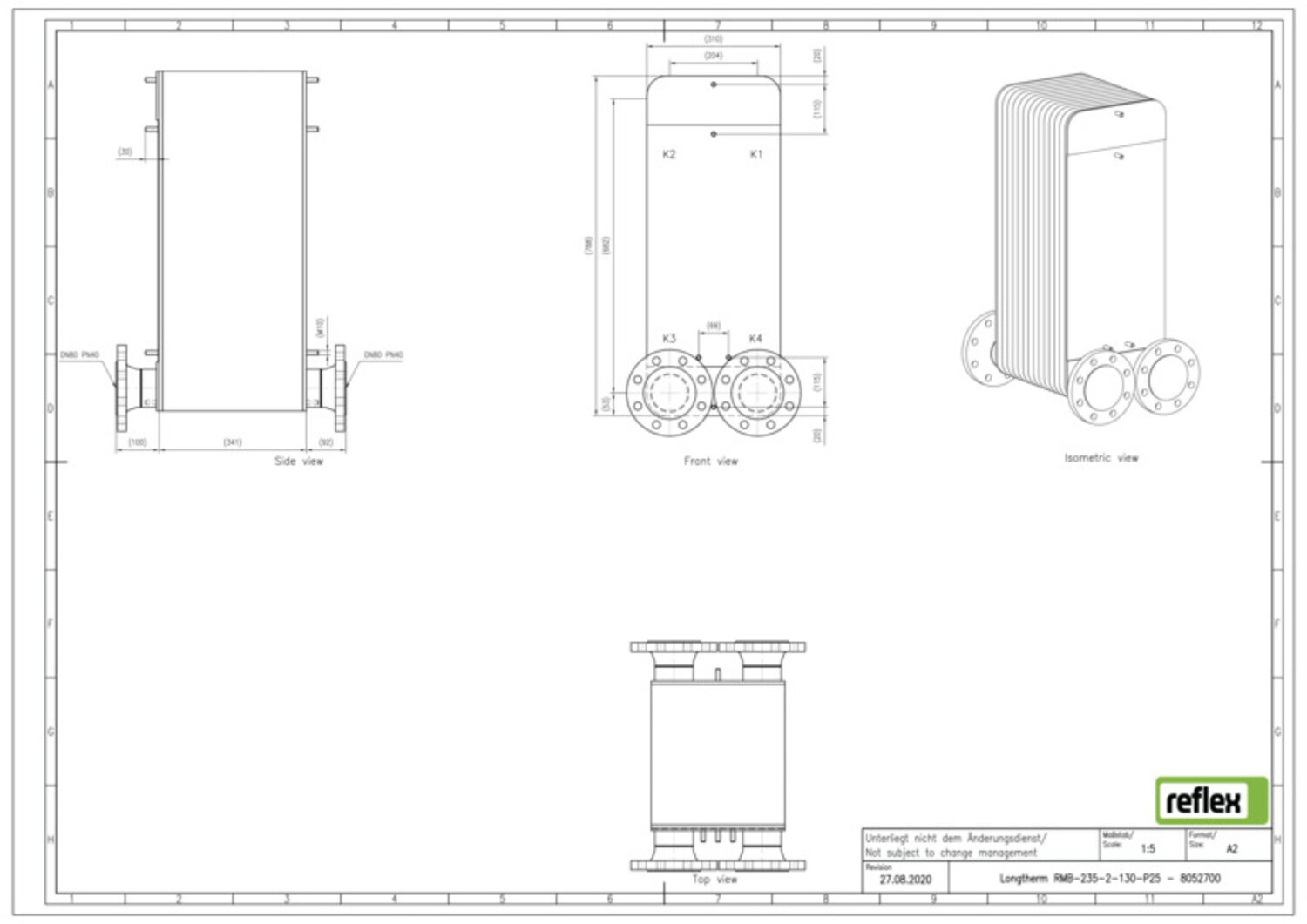 Reflex Wärmetauscher Longtherm RMB-235-2-130, Plattenzahl 130, gelötet, Edelstahl, zweigängig